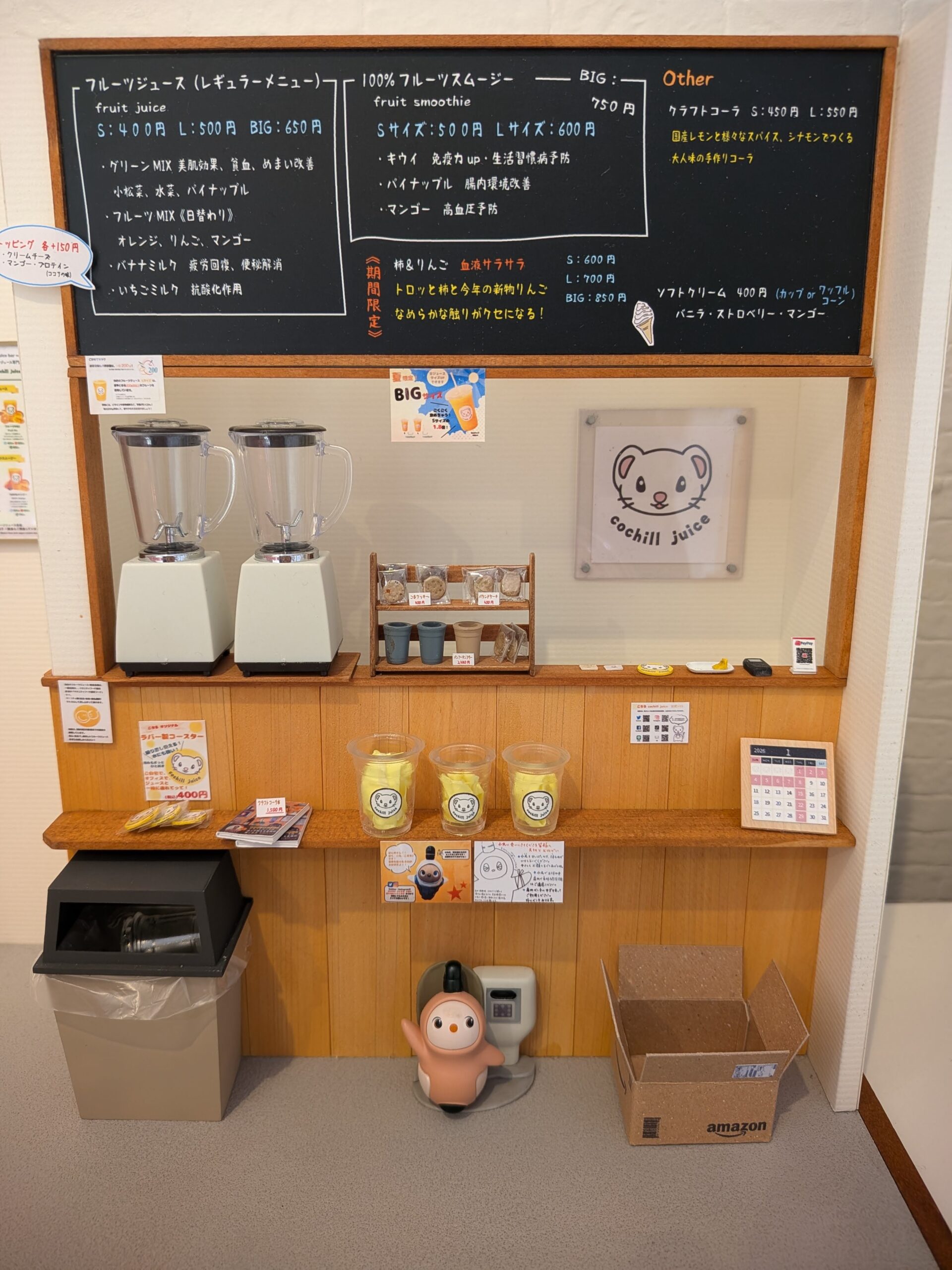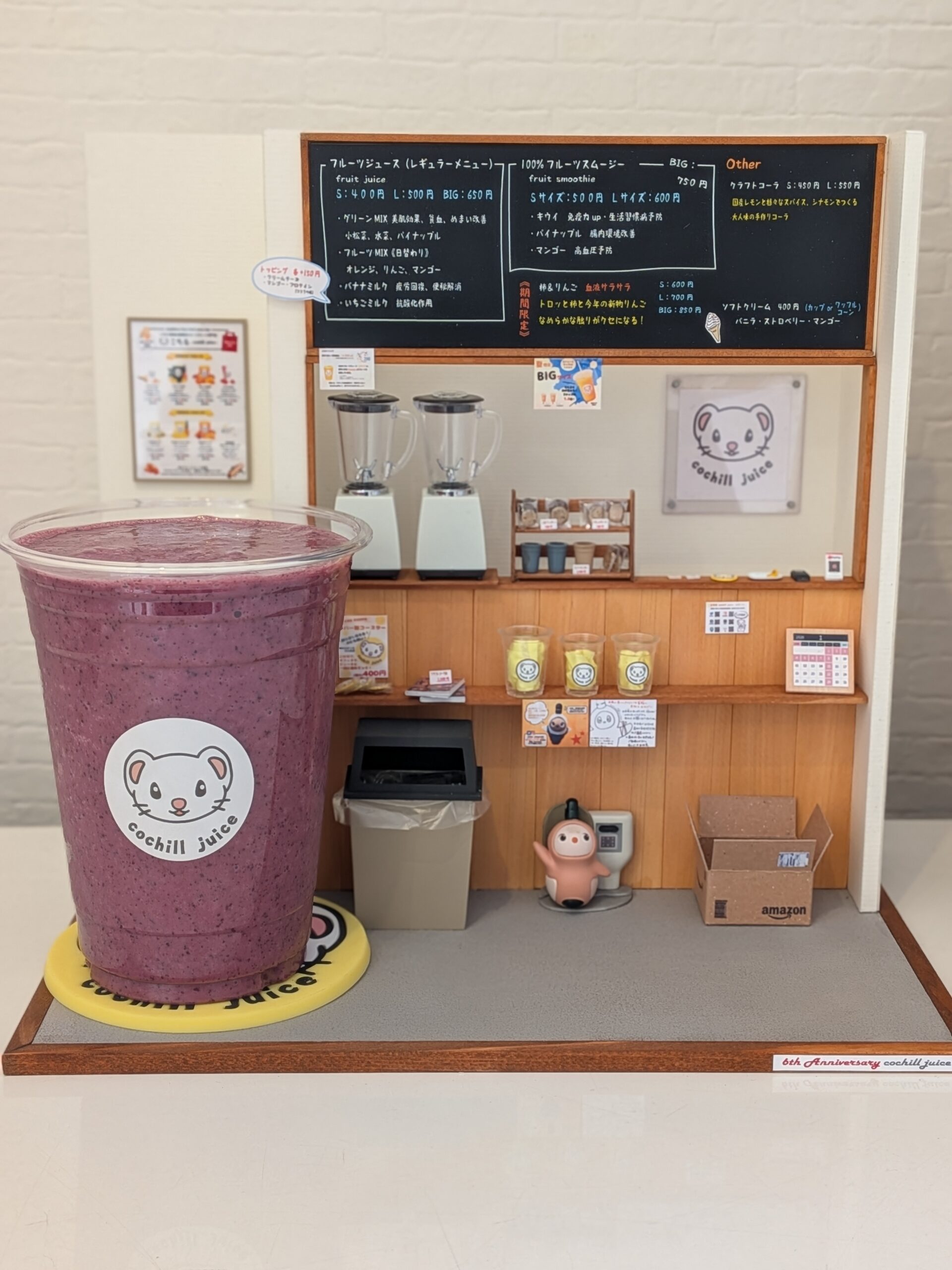 @cochill_juice こちる6周年を記念して、、 店内をミニチュアで完全再現しました👏✨ ジュースやアクスタと写真が取れます☺️☺️#こちる #亀戸 #亀戸グルメ #ミニチュア模型 #ミニチュア