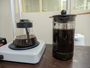 コーヒーについても、いくつかの淹れ方を検討しましたが、皆様をお待たせしない手法として、フレンチプレスを採用しました。