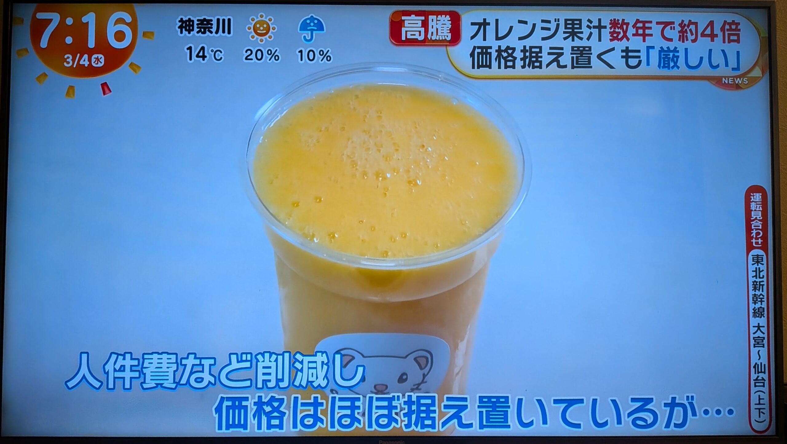 他のジュースに比べ、オレンジジュースの値段が高くなったり、販売を取りやめるチェーン店もありますよね。